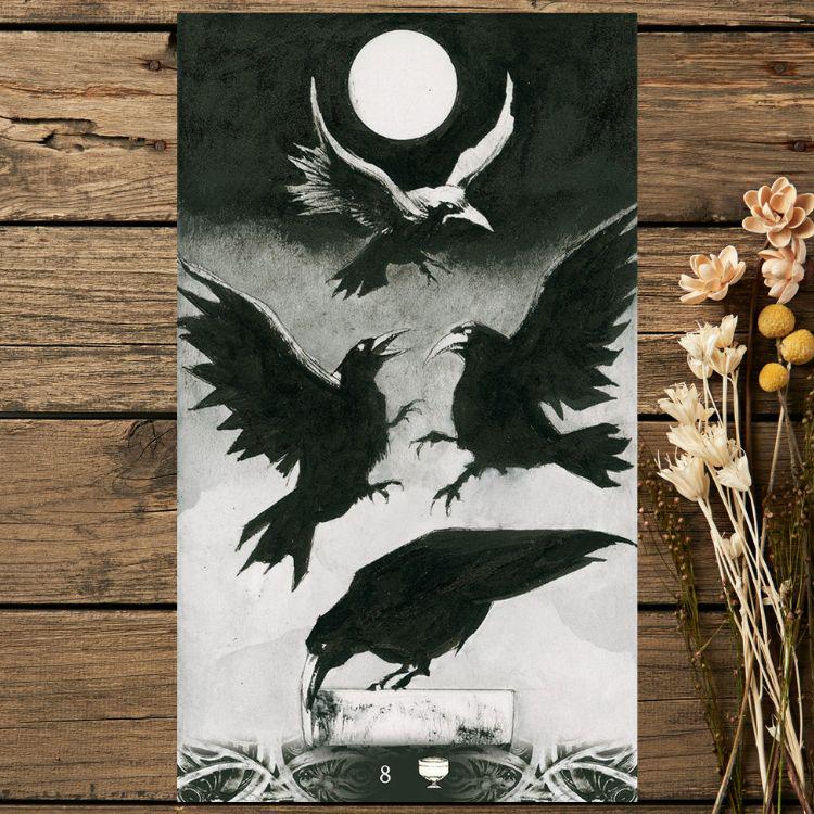 As omens, messengers, and guardians between worlds, crows carry ancient wisdom and raw truth. Murder of Crows Tarot invites you into a stark, gothic universe where shadow, intuition, and transformation walk side by side.