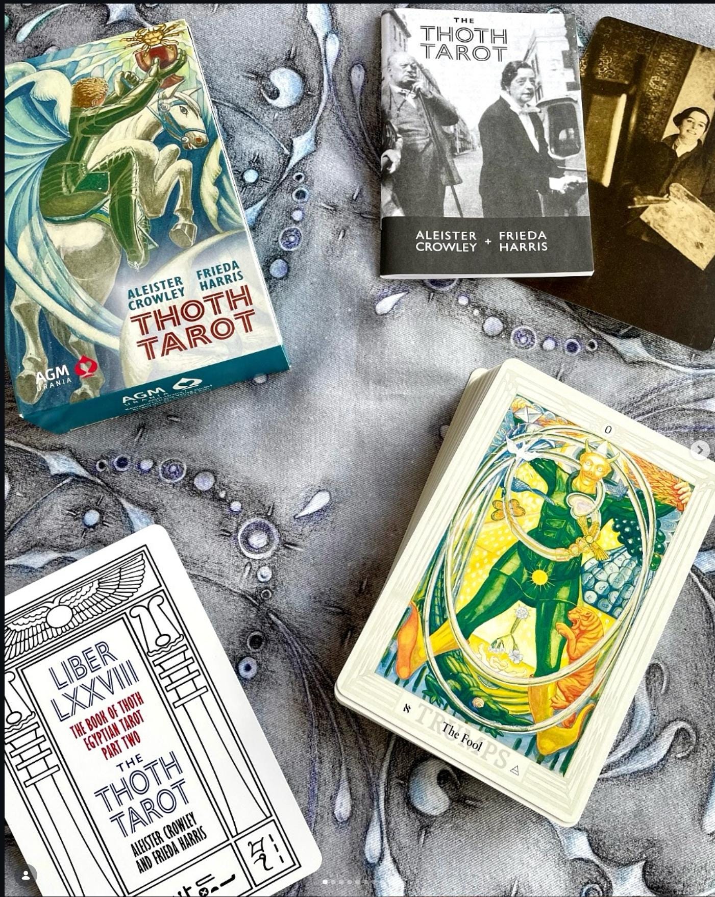 The Crowley Thoth Tarot channels Egyptian mysticism, Qabalah, astrology, ceremonial magic, and Thelemic philosophy into a unified symbolic system. Painted by Lady Frieda Harris under the direct guidance of Aleister Crowley, each card is a living glyph—precise, layered, and uncompromising.